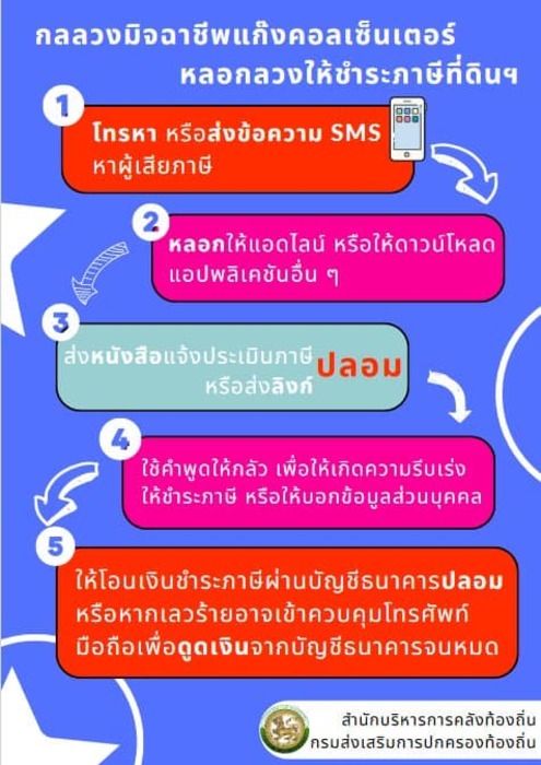 กลลวงมิจฉาชีพแก๊งคอลเซ็นเตอร์หลอกลวงให้ชำระภาษีที่ดินฯ