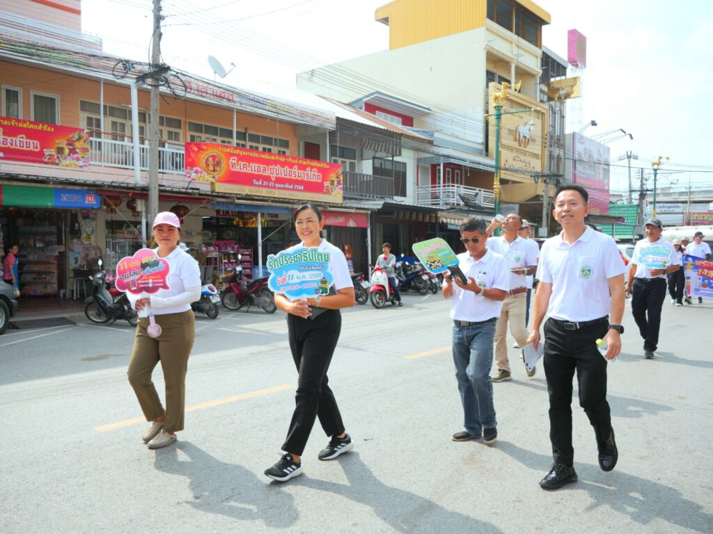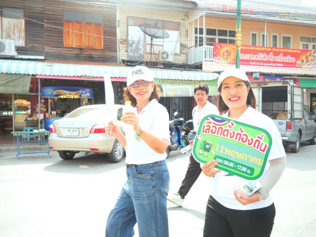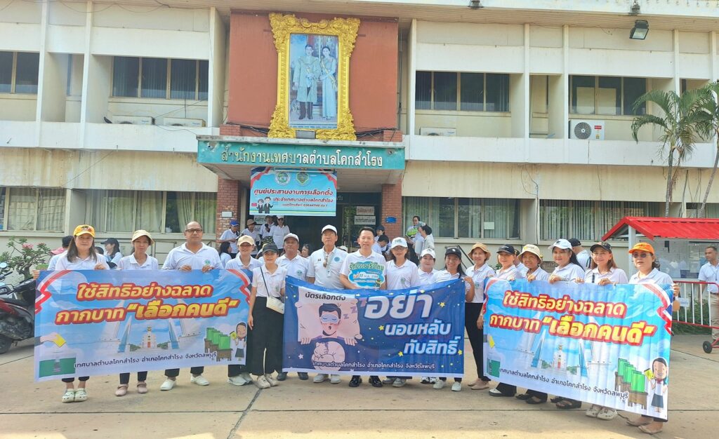 พร้อมด้วยหัวหน้าส่วนราชการ และพนักงานเจ้าหน้าที่ และคณะครูในสังกัดเทศบาลฯ ทั้ง 3 แห่งลงพื้นที่เดินรณรงค์ แจกแผ่นพับประชาสัมพันธ์ เชิญชวนให้ประชาชนออกมาใช้สิทธิเลือกตั้งสมาชิกสภาเทศบาลและนายกเทศมนตรีตำบลโคกสำโรง