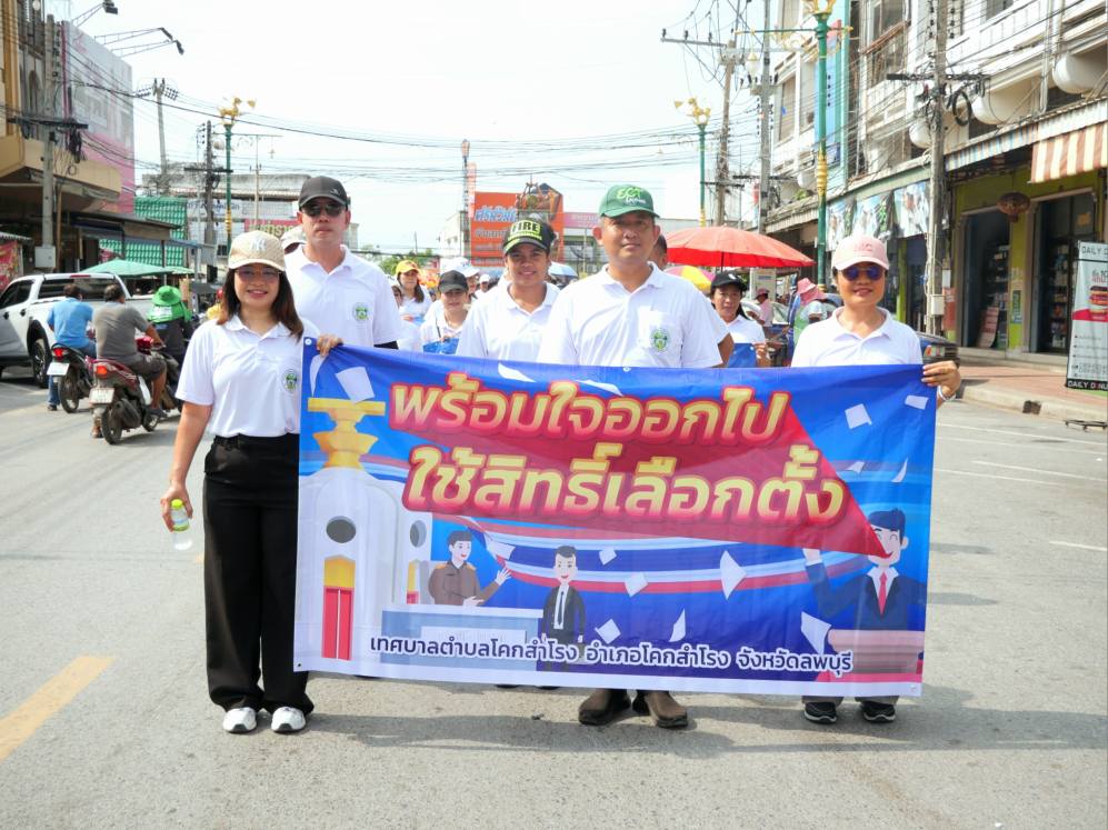 เทศบาลตำบลโคกสำโรง จัดกิจกรรมเดินรณรงค์ประชาสัมพันธ์เชิญชวนประชาชนให้ออกไปใช้สิทธิเลือกตั้งสมาชิกสภาเทศบาล เเละนายกเทศมนตรีตำบลโคกสำโรง