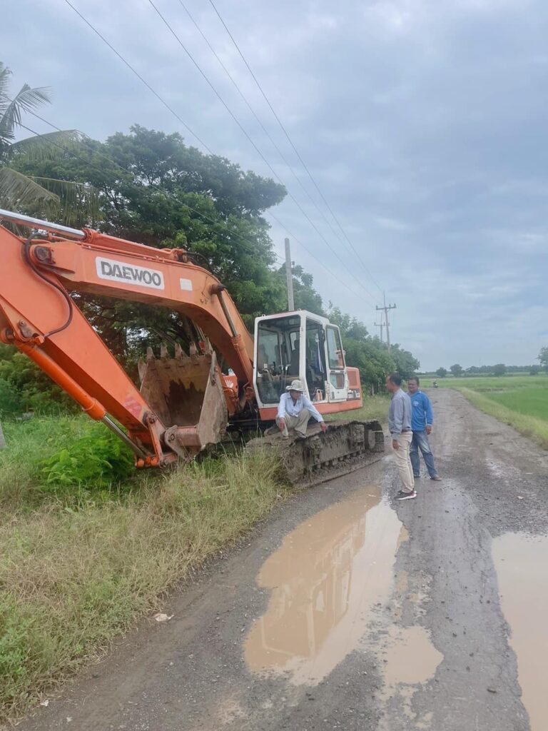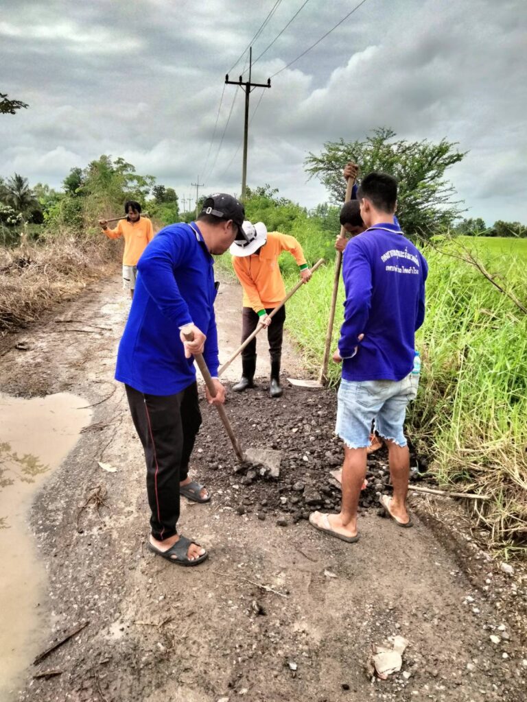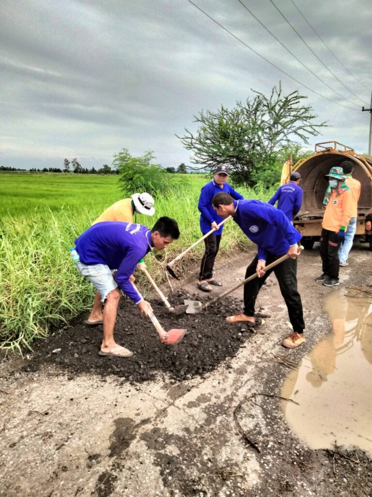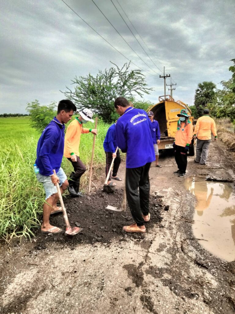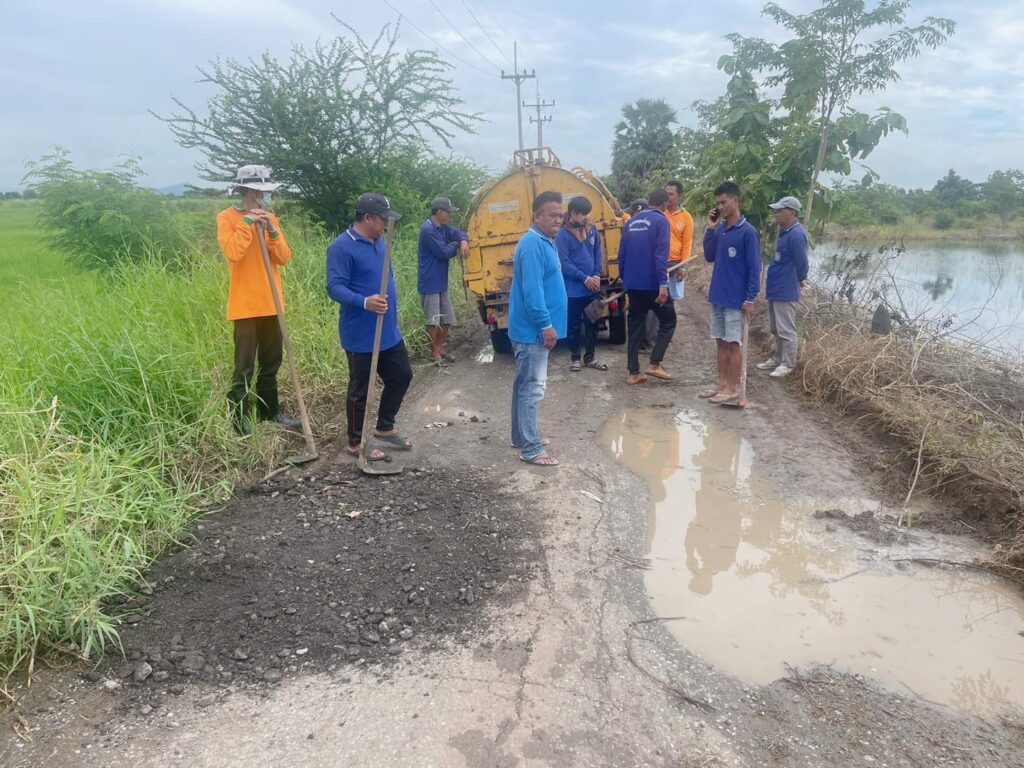 พร้อมทีมงานสาธารณะสุขฯ ดำเนินการซ่อมแซมถนน บริเวณทางเข้าบ่อขยะเทศบาล