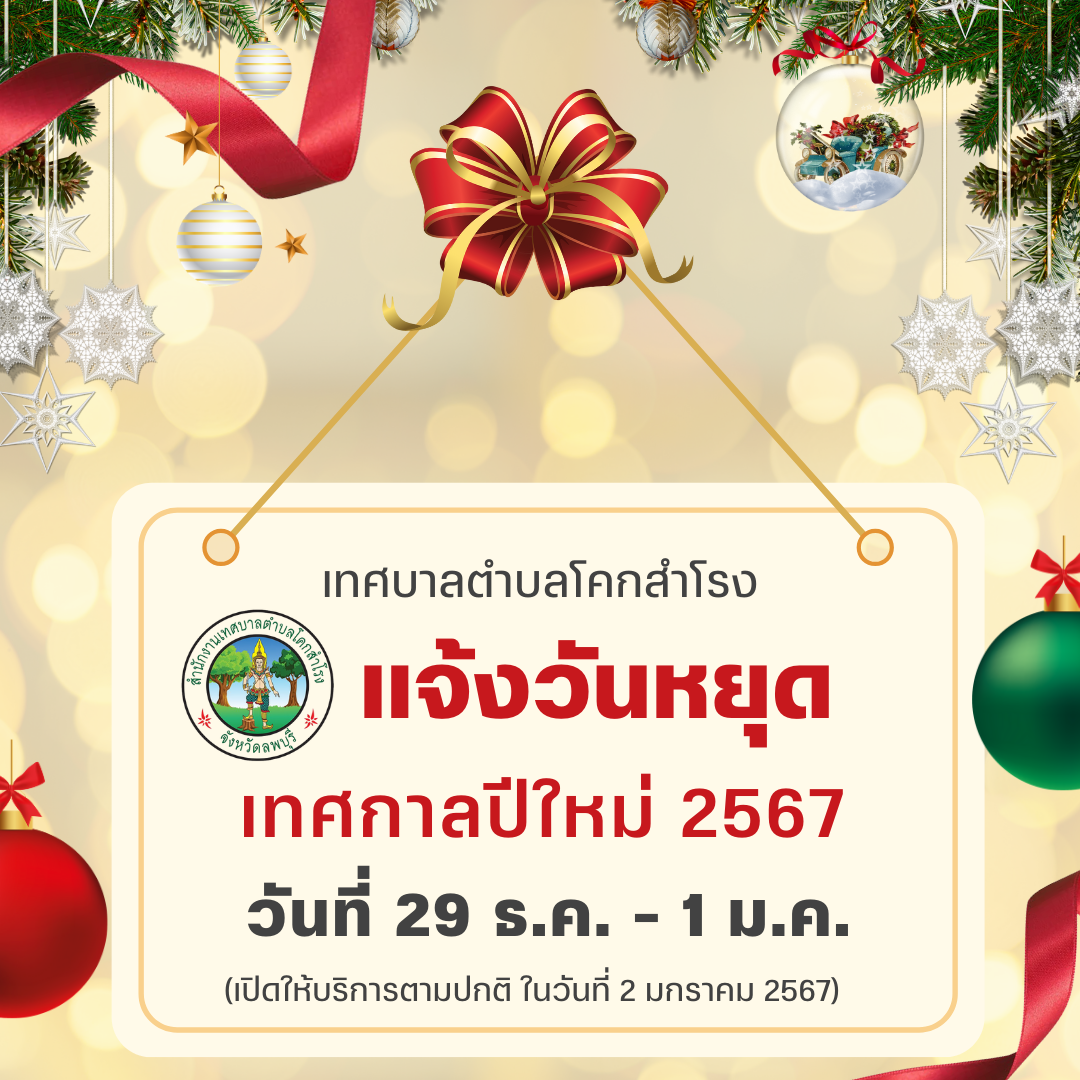 เทศบาลตำบลโคกสำโรง แจ้งปิดทำการส่วนสำนักงานช่วงเทศกาลปีใหม่