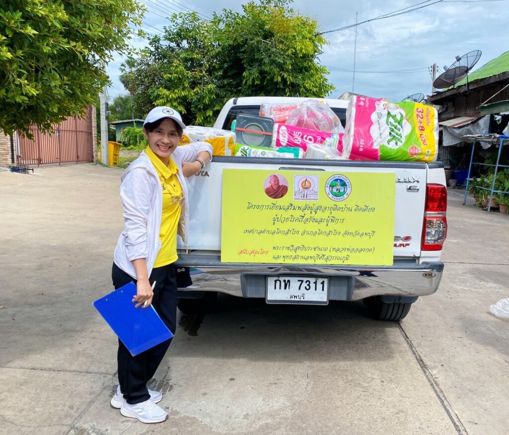 แจกเครื่องอุปโภค บริโภค ในโครงการเยี่ยมเสริมพลังผู้สูงอายุติดบ้าน ติดเตียง ผู้ป่วยเรื้อรังและผู้พิการ สู่ชุมชนตำบลโคกสำโรง จังหวัดลพบุรี
