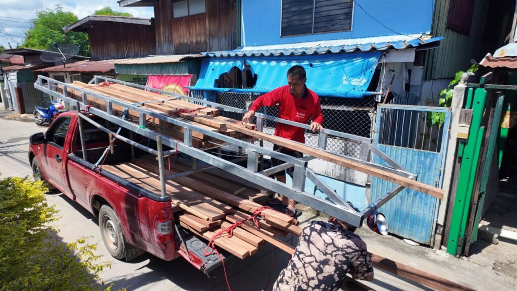 ลงพื้นที่รับมอบวัสดุก่อสร้าง โครงการการพัฒนาที่อยู่อาศัยและปรับสภาพแวดล้อมที่เหมาะสมสำหรับผู้สูงอายุและคนทุกช่วงวัยในครอบครัวเปราะบาง