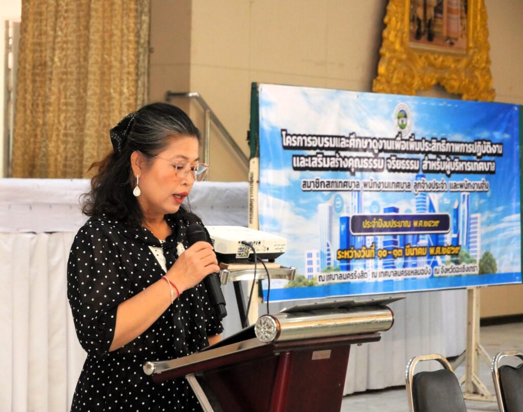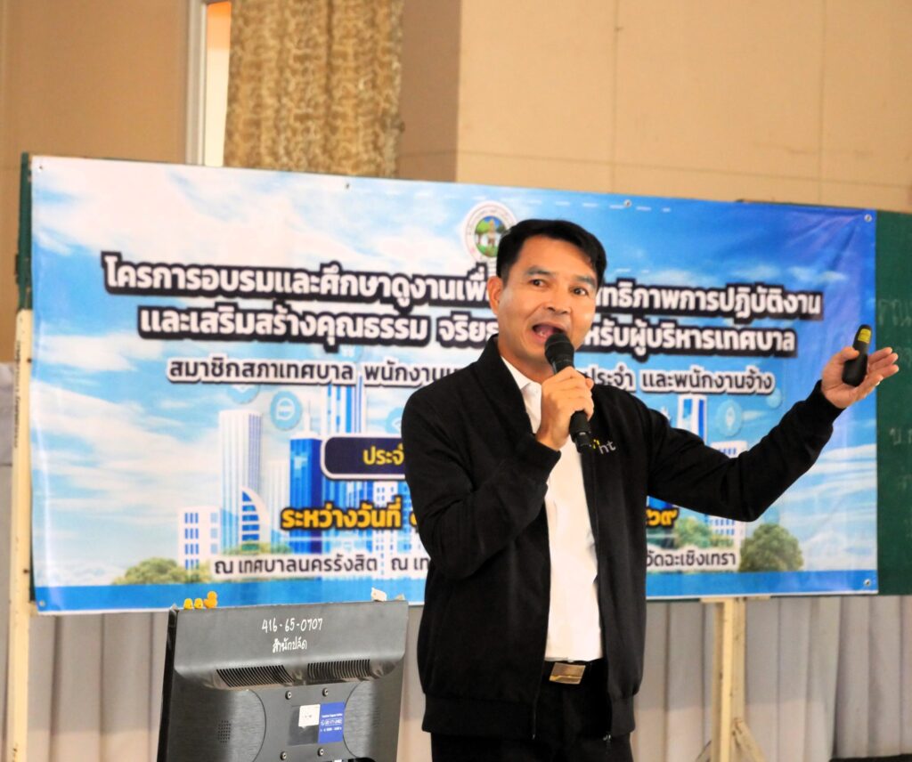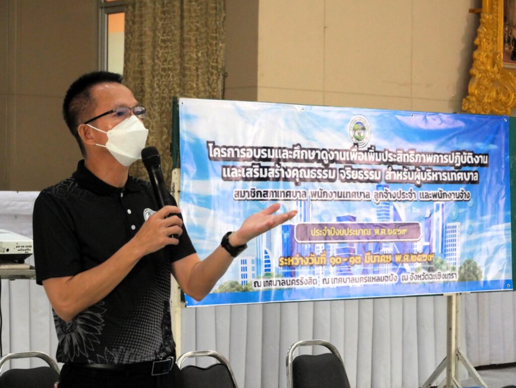 การบริหารจัดการขยะและการเพิ่มประสิทธิภาพในการปฏิบัติงาน ควบคู่กับการส่งเสริมคุณธรรมและจริยธรรมในการทำงาน โดยได้รับเกียรติจาก นายสมบูรณ์ ตรีฤกษ์งาม ปลัดเทศบาลตำบลโคกสำโรง เป็นวิทยากรบรรยายให้ความรู้ เพื่อเสริมสร้างความเข้าใจในการจัดการขยะอย่างมีประสิทธิภาพ และส่งเสริมแนวทางการปฏิบัติงานของบุคลากรให้เกิดประสิทธิภาพ โปร่งใส และยึดหลักคุณธรรมจริยธรรมในการปฏิบัติราชการ