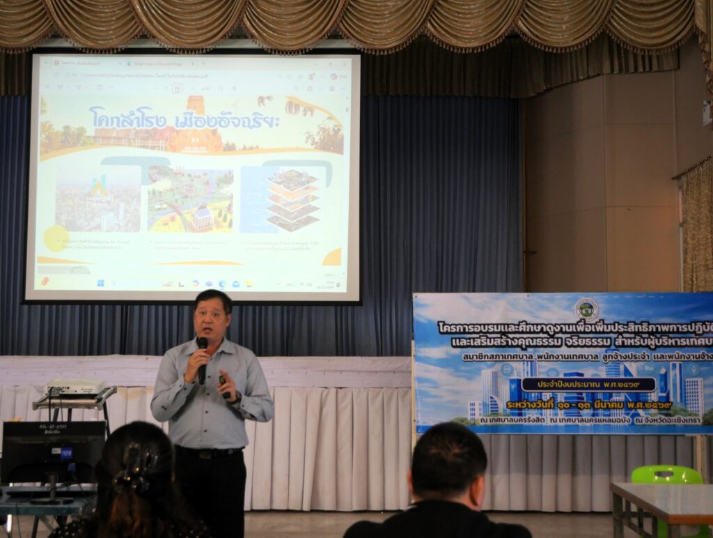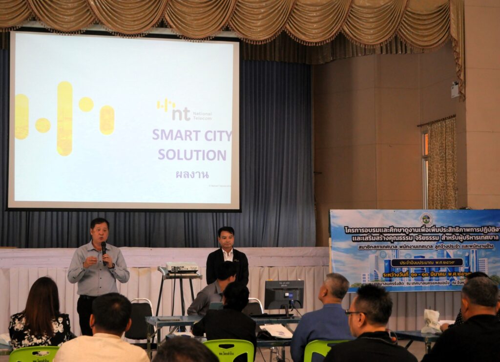เทคโนโลยีดิจิทัลเพื่อการบริหารท้องถิ่น (Smart City) หรือเมืองอัจฉริยะ เพื่อยกระดับคุณภาพชีวิตประชาชน เพิ่มประสิทธิภาพการบริหารจัดการทรัพยากร และสร้างเมืองที่ทันสมัย ปลอดภัย และเป็นมิตรต่อสิ่งแวดล้อม โดยได้รับเกียรติจากวิทยากรผู้เชี่ยวชาญจาก บริษัท โทรคมนาคมแห่งชาติ จำกัด (มหาชน) หรือ National Telecom Public Company Limited (NT) มาให้ความรู้และถ่ายทอดประสบการณ์ด้านเทคโนโลยีดิจิทัลเพื่อการพัฒนาเมืองและการบริหารงานท้องถิ่น