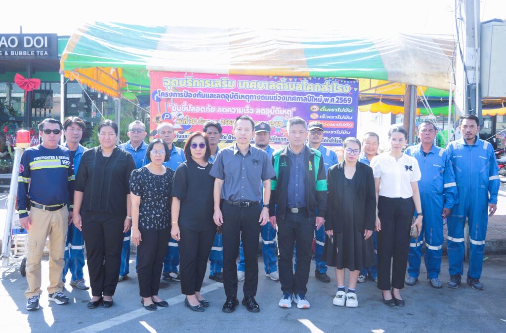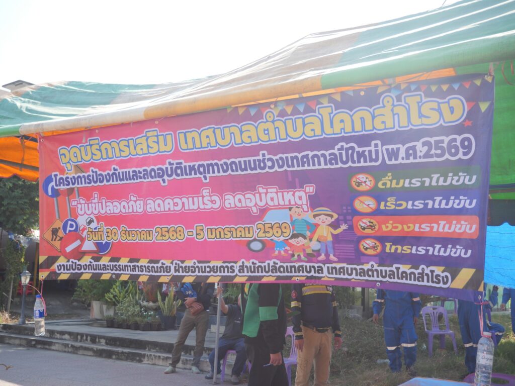 เทศบาลตำบลโคกสำโรง นำโดย นางสาวสุรีรัตน์ วรปัญญา นายกเทศมนตรีตำบลโคกสำโรง มอบหมาย นายสมบูรณ์ ตรีฤกษ์งาม ปลัดเทศบาลตำบลโคกสำโรง พร้อมด้วย หัวหน้าส่วนราชการ ร่วมพิธีเปิด “โครงการป้องกันและลดอุบัติเหตุทางถนนช่วงเทศกาลปีใหม่” ดำเนินโครงการ โดย งานป้องกันและบรรเทาสาธารณภัย เทศบาลตำบลโคกสำโรง ซึ่งจัดตั้งจุดบริการเสริมในการป้องกันและลดอุบัติเหตุทางถนนในช่วงเทศกาลปีใหม่ ณ บริเวณหน้า CJ MORE ซีเจ ซูเปอร์มาร์เก็ต สาขาโคกสำโรง ![]()