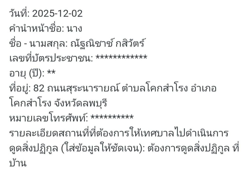 OSS 2/2568 เรื่องขอดูดสิ่งปฏิกูล จากนางณัฐณิชาช์ กสิวัตร์